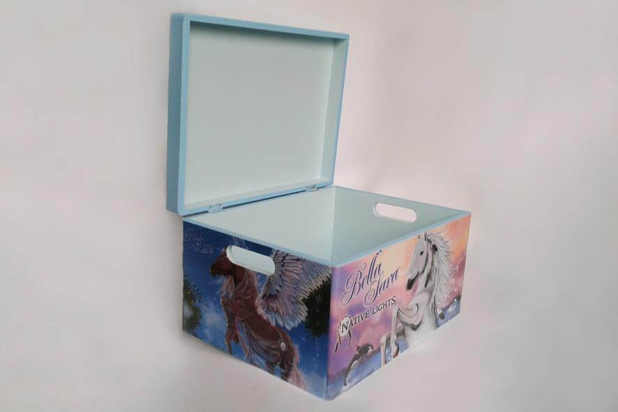 Kuferek D01 Kuferek duży z wieczkiem Rozmiar: 40 cm x 30 cm x 23 cm (Dł. x Szer. x Wys.) Opis Drewniany kuferek zdobiony techniką decoupage. Malowany farbami akrylowymi i pokryty lakierem satynowym. << wróć do listy